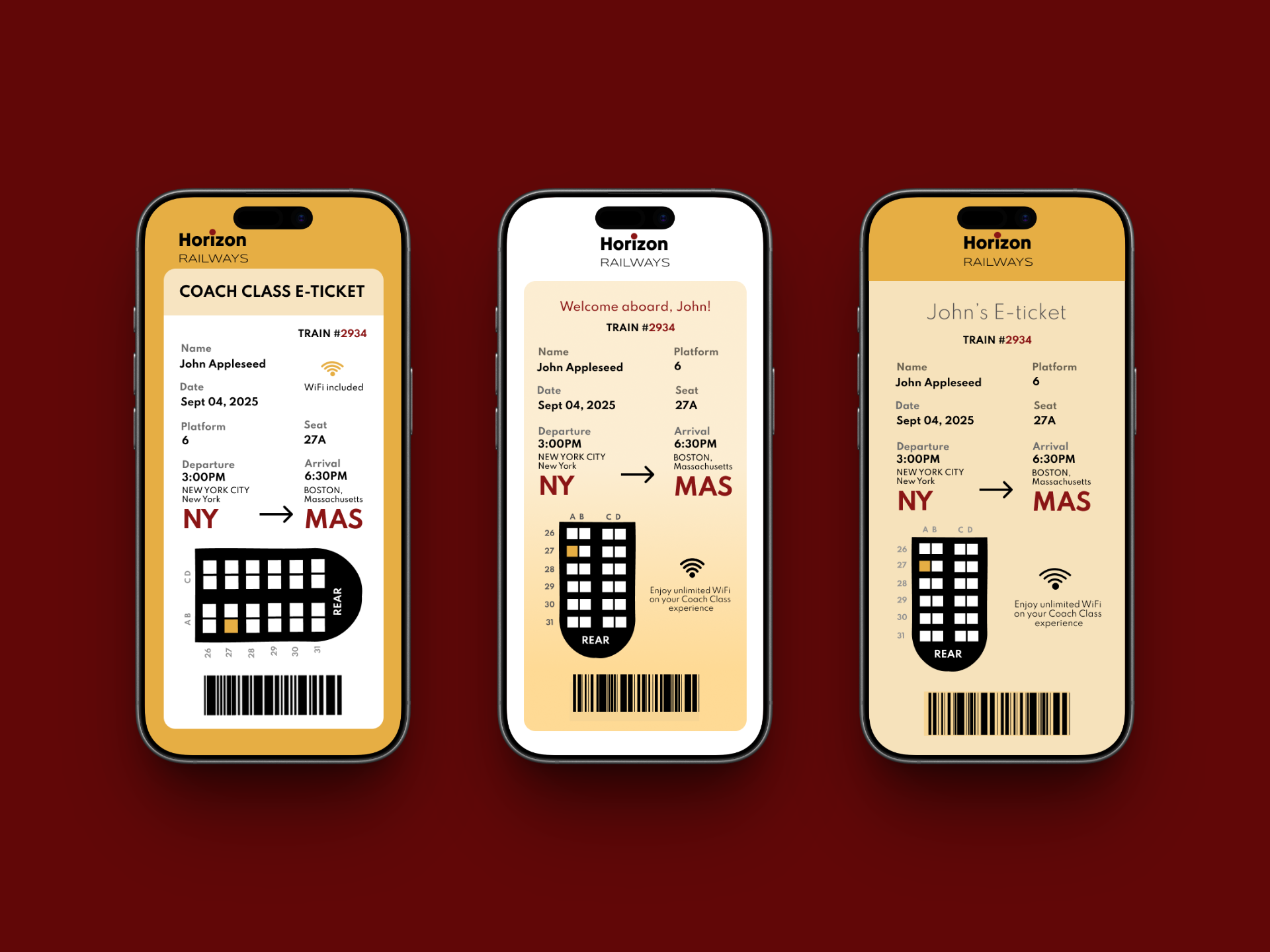 To re-design and conceptualize Horizon Railways' e-tickets as they shift from physical tickets to a digital experience, while maintaining legibility and user trust.
